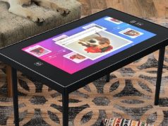This table is made from hardwood oak with a curved rounded design. The table extends to 86.8″. It has a hydraulic gas strut mechanism for height adjustment. The above video shows it in action.