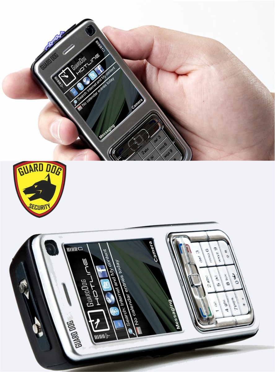 Here is a 3.6m stun gun that looks like a cell phone but delivers enough power to stop aggressive attackers. The Guard Dog Hotline Fake Cell Phone Stun Gun comes with a rechargeable battery and LED flashlight. It has a safety switch to prevent accidental charge.