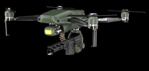This is the Felon 1.0 from Feloni Aero: a weaponized drone with a 5.56 weapon system and advanced surveillance features that allows operates to engage targets from a safe distance with surgical precision. It is designed to improve situational awareness. This drone uses advanced sensors and communication systems to allow easy integration with ground forces.