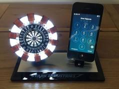 The Flight Stand has a compact, lightweight design. It can be ordered in various colors. This stand not only holds your phone but also a cup. You can find out more about it on Etsy.