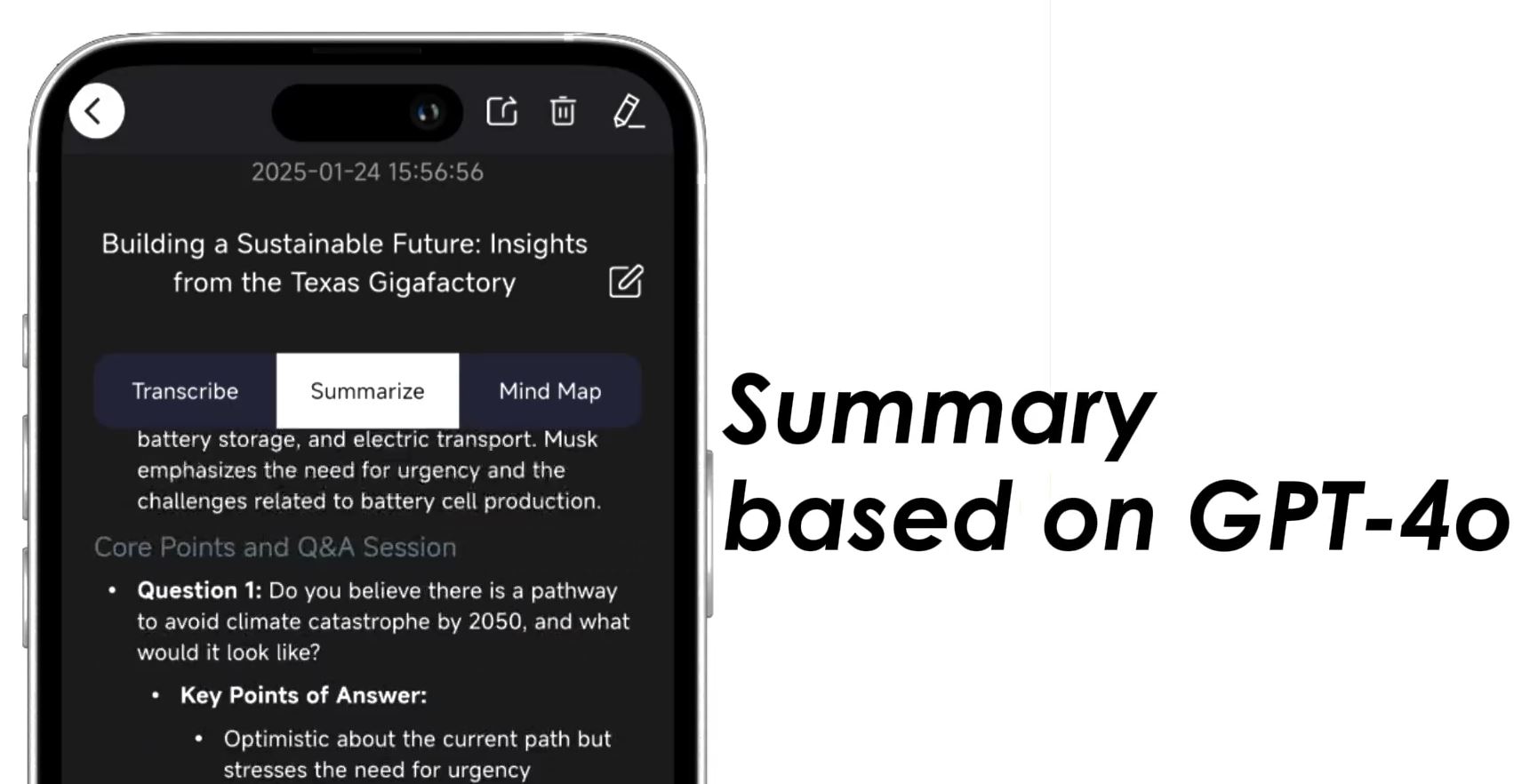 You can use your phone to reorder recordings and create mind maps. This audio recorder supports voice-activated recordings. It can protect your data with password. It comes with 1800 minutes of free AI use every month.