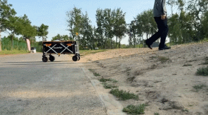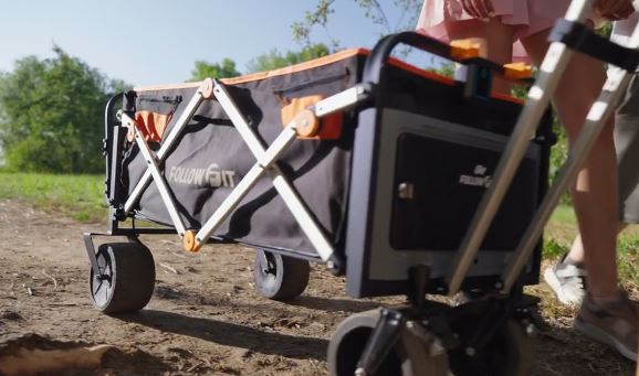 Here is an electric wagon with AI vision that automatically follows you. FollowFit also folds down with a simple touch, so you can easily take it with you anywhere. Its AI system has facial and body recognition. FollowFit comes with intelligent obstacle detection to navigate around uneven paths. It also has a Hill Assist and Auto Brake function.