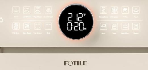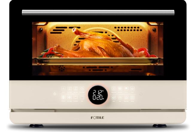 Here is another steam oven that replaces multiple appliances. The FOTILE ChefCubii Oven has steam, convection, air fry, and dehydrate functions. It has enough room for a 12-inch pizza and whole roast chicken. This oven has 1800W of power with top, bottom, and rear coils to cook your food evenly. It features smart steam control and 4 steam modes, including high steam for tough meat. It also has a 3D air fry mode with a 2000 RPM fan to cut fat and give you a crispy texture.