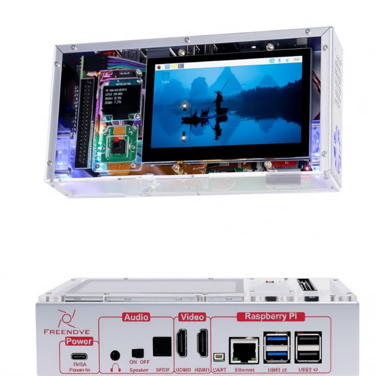 The Raspberry Pi 5 is a wonderful platform for building your own robots and smart gadgets. If you are going to use it for a serious project, you are going to need a case and touchscreen for it. The FREENOVE Raspberry Pi 5 Touchscreen Case has you covered. It comes with a NVMe SSD slot, 5MP camera, programmable RGB lights, and cooling system. It also has a 4.3-inch touchscreen display.