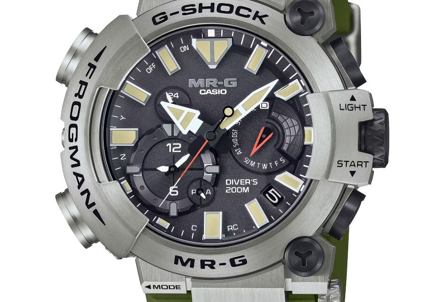 Here is a stylish titanium watch ready for your extreme adventures. The G-SHOCK MRGBF1000RG Goliath Frogman Watch is solar powered and 200M water resistant. It is also shock resistant. It has many standard features, such as stopwatch, countdown timer, and daily alarm. With Bluetooth connectivity, this watch connects to your smartphone for time adjustment.
