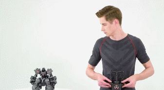 Ganker EX: a smart battle robot with man-machine sync technology that can mimic your actions and move in all directions. It is app controlled and has an electronic gaming system. Ganker EX has 0.09sec/60-degree servo motors for smooth motion.