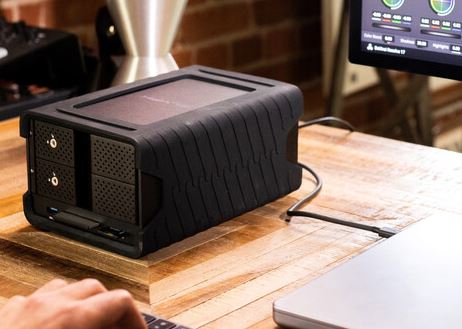 The Blackbox PRO RAID has a rugged aluminum shell that acts as a heatsink. It is formatted for macOS and can be used with Time Machine. It offers transfer speeds up to 550MB/s.