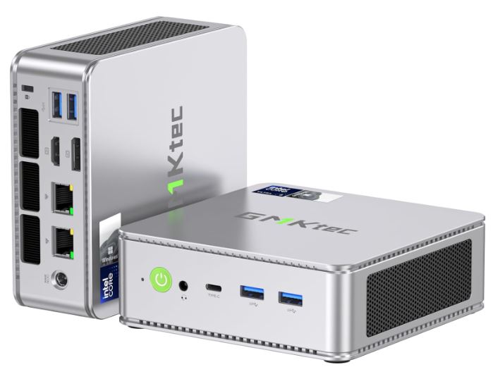 The K9 mini PC comes with Intel AI Boost. It supports 4K triple screen setups thanks to its HDMI, DP, and Thunderbolt 4 ports. It also has dual copper heat pipes and a quiet fan for efficient cooling. It runs Windows 11 Pro.