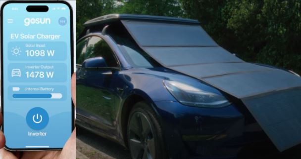 The GoSun EV Solar Charger comes with a 200W solar panel, 1800W inverter and controller, and 2 x 450W folding panels. It also has a security lock and GPS tracking device. This EV charger has a 1500 WH LFP battery. You can reserve yours for under $5000.