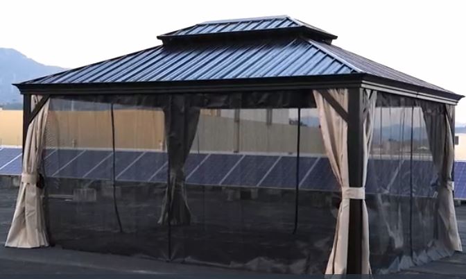 Getting a hardtop gazebo is a great way to upgrade your backyard. It provides you with an additional space to relax and even get work done. The Garvee 12x20ft Hardtop Gazebo has a heavy duty galvanized aluminum frame and a galvanized iron roof that blocks UV. The double-top design enhances airflow. This gazebo is designed to withstand corrosion. Its roof can handle up to 6f of snow.