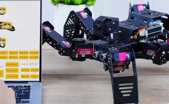 The HIWONDER SpiderPi Pro is one of our favorite robots. It is an educational robot hexapod powered by the Raspberry Pi platform. The latest model uses a Pi 5. It is ready for Python programming. It comes with various sensors, including an ultrasonic and IMU sensor. It uses a wide-angle HD camera for AI vision.