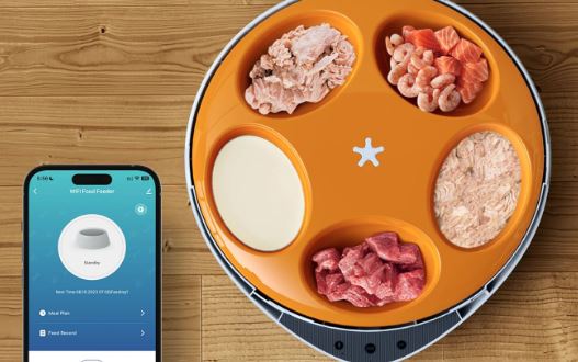 Here is a smart feeder that lets you serve dry and wet pet food to your furry friends. The HIXX Automatic Pet Feeder can serve 5 fresh meals at 4 different times. It has 2 power supply options. This feeder also lets you record a voice call for your pets.