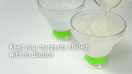 Here is a cocktail glass that keeps your margarita cold. The Host Freeze Margarita Glass has insulated plastic walls that are filled with a proprietary cooling gel. Simply freeze these for two hours and you will be able to enjoy frozen drinks longer.