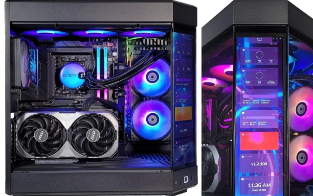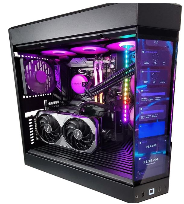 This PC has a 12.6″ monitor to show memory, storage, time, and other settings. This gaming computer is cooled by a 240mm AIO liquid cooler.