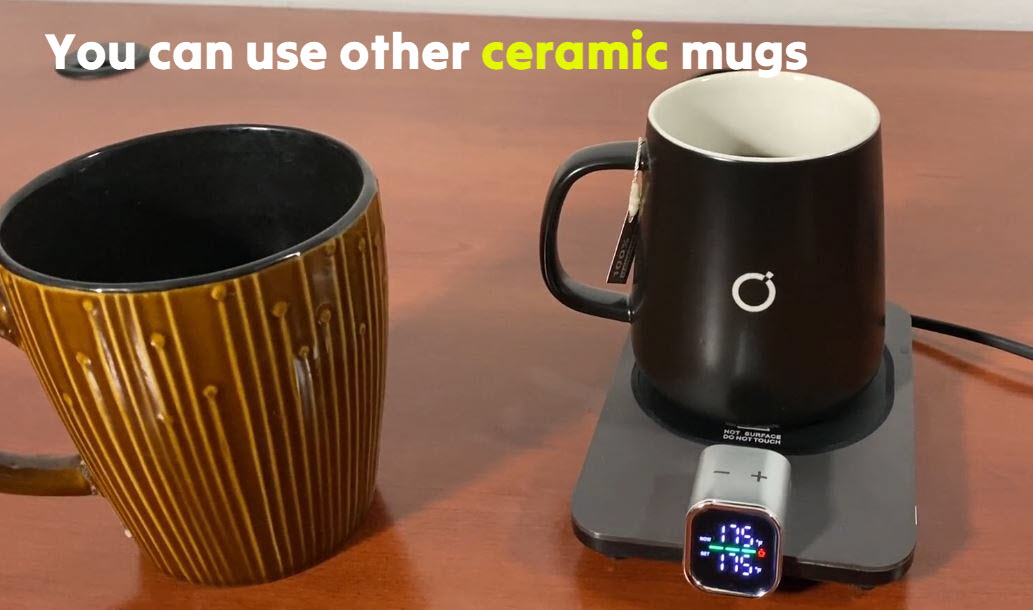 The manufacturer recommends using the included mug but you can technically use other ceramic mugs. You should not use glass or metal mugs. The display is pretty convenient as it not only shows your target temperature but the current temperature. The unit has an auto shut-off function, so it will turn off after 15 minutes when no mug is detected or if you leave your cup unmoved for more than 2 hours. This coffee warmer is pretty safe but the surface gets hot, so you will want to avoid touching it.