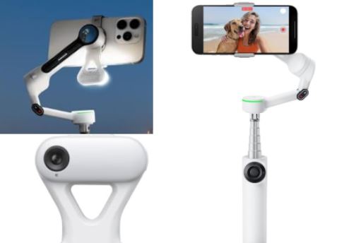 Apple DockKit compatible gimbals and smartphone holders feature automatic subject tracking using your phone’s camera. They can pan and tilt your camera 360 and 90 degrees automatically to keep you in the frame. The Insta360 Flow 2 Pro is a foldable AI smartphone gimbal with DockKit support for multi-person tracking. It supports tracking in over 200 apps. In free tilt mode, you can keep the same angle as you move your phone up and down for creative shots.