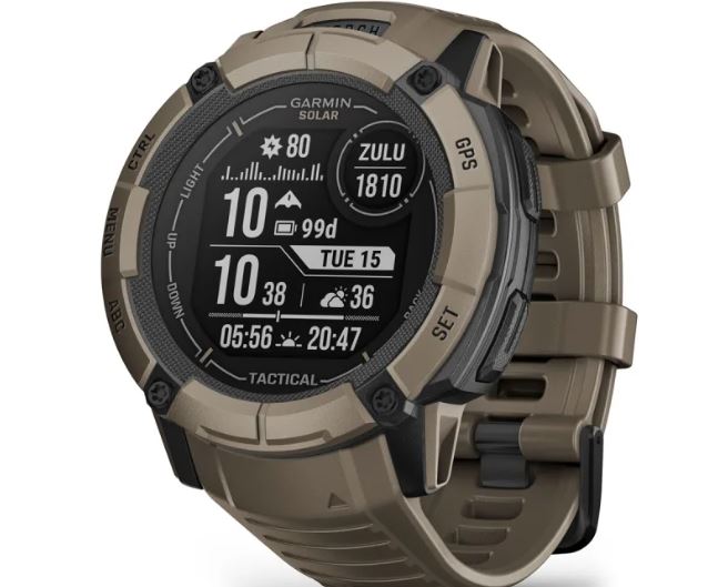 Meet the Instinct 2X Solar Tactical Edition: a GPS smartwatch with solar charging that is ready for your outdoor adventures. This tough watch can serve as a multifunctional fitness tracker. It has a LED flashlight for nighttime use.