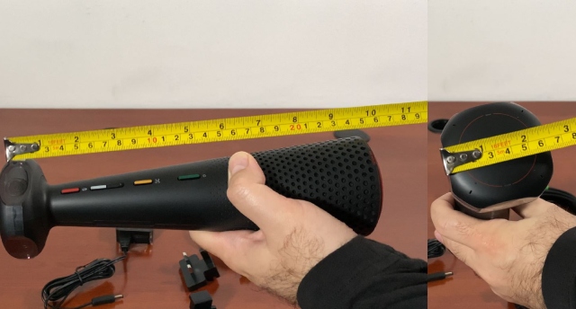 The unit has a total of 5 buttons: on/off, volume up/down, mic mute/unmute, and video mode switch. Its video mode button lets you switch between modes fast (Presentation, Conferencing, Surround, Hybrid Learning). In Conference Mode, you get a 360-degree view of all the action. In Hybrid Learning mode, the speaker and listeners are shown at the same time. It is perfect for capturing lectures. In Surround mode, two horizontal screens are shown to display everyone. TOTEM 360 has a 1/4″ hole, so you can mount it to a tripod. It also has a very compact design, so it fits anywhere.