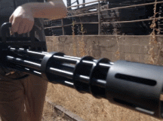 Imperatorworks has taken it to the next level by building a Gatling Gun version of this chair. The IW-J20 Pro Gatling Gun Gaming Workstation just looks more badass with tank treads. It can handle ultra-wide monitors up to 49″. It comes integrated with RGB LED lights. The above video shows it from various different angles. More info is available here.