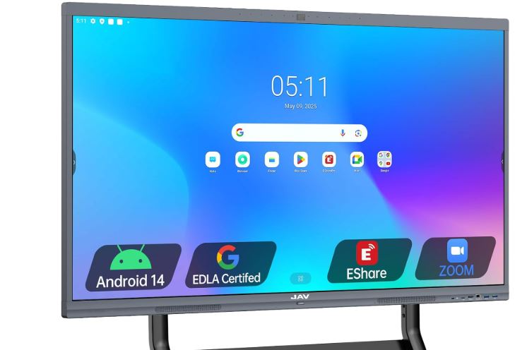 A lot of businesses rely on interactive boards to allow their teams to collaborate on tasks and presentations. The JAV 55-inch Smart Interactive Whiteboard is designed for these types of jobs. Powered by Android 14, this model has 8GB RAM and 128GB of storage space. It has a gorgeous display and built-in camera for remote collaboration. It works with a wide range of productivity apps. This smart whiteboard is compatible with iOS, Windows, and Mac devices too.