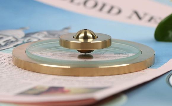 Meet the Joytech UFO Spinning Top: a gyro toy that uses an electric starting motor to rotate at high speeds (10000rpm). It can spin for more than 8 minutes. The faster you rotate it, the smoother its movement. This UFO spinning top has a brass construction.