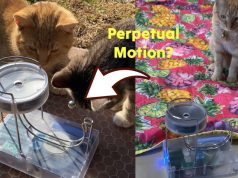 Here is another kinetic art toy that gives the illusion of perpetual motion. Jupiter from Matscot gets going when you give it a nudge. It starts slow but speeds up in a few seconds. It it easy to assemble and disassemble. You will simply need to put a battery in the base.