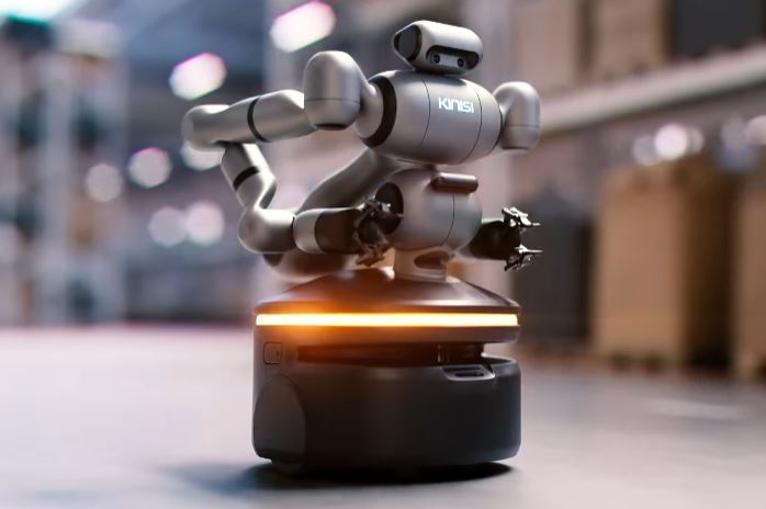 This is the Kinisi KR1: a mobile manipulation platform designed to work alongside humans. It features real-time 3D perception with cameras and sensors to understand complex environments. It is smart enough to navigate around obstacles in real-time and adapt to changing conditions. It also moves faster than legged humanoid robots.
