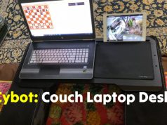Here is a modular lap desk that comes with everything you need to get work done on your laptop and smartphone. Lagio comes with detachable Bluetooth speakers, power bank, adjustable legs, and tablet/phone slots. It also has cable management and a cup holder.