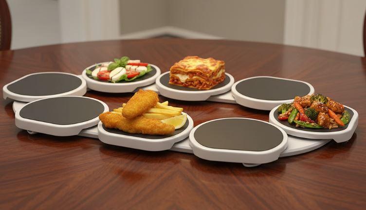 Serving food to your guests is going to be a whole lot easier with the Lazy Susan Revolution. This is a clever track-based serving system that can be set up in a couple of minutes. It can be expanded to fit larger tables. You simply have to put your dishes on it and the rest is easy. Your dishes will glide over the table, allowing your guests to help themselves.