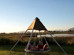 This swing bed accommodates two adults. It measures 126″W x 63″D x 69″H.