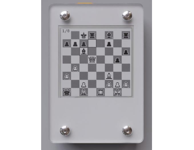E-ink devices are wonderful for reading books. Plenty of your favorite e-book readers use this technology. This gadget uses the same technology to bring you 25000 chess puzzles. It has medium and hard checkmate puzzles that are in the lichess public domain. It is fully charged in 2 minutes and lasts for up to 100 screen refreshes.