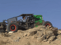 The vehicle’s cantilever front shocks offer optimal steering performance under load. It has a neutral central gravity thanks to weights installed under the chassis. The above video shows it in action.