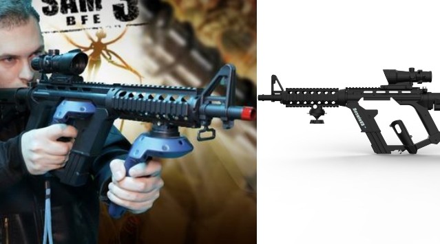 Here is another VR gun controller that lets you get more into shooting games. The M4 Rifle for Vive controllers has an ABS body weighing 1.7lb. It has front magnets and adjustable buttstock. You can use to play Overkill, Arizona Sunshine, War Dust, ZomDay, and other popular games.