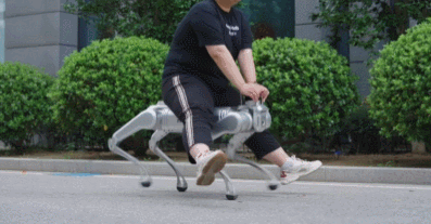 As you can see in the above video, this robot dog can step over obstacles over 60cm. It can maintain its balance when kicked. It can even balance on two limbs. You can even ride it.