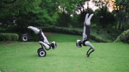 Wheeled robots are nothing new. Unlike bipedal robots, these will be able to cover more area on a flat surface while consuming lower power. MagicLab MagicDog-W is a wheeled robot dog with a speed of up to 3 m/s. It uses 17 motors and 7 inch tires to navigate any terrain with agility. It can also go up and down the stairs.