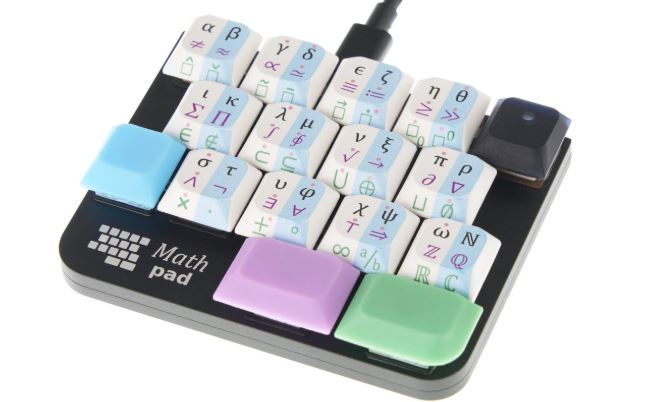 To type letters and numbers, a decent keyboard is more than enough. Typing mathematical symbols can be a bit more challenging. The Mathpad is designed for that. It allows researchers and engineers to type mathematical notations with less effort. It supports Greek letters, calculus symbols, logic, and modifiers.