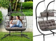 Here is another gorgeous chair for your porch and patio. The Modway Encase hanging egg chair comes with an espresso metal stand and rattan seat. It comes with an all weather cushion to keep you comfortable as you bask in the sun. This chair has max weight limit of 265lbs.