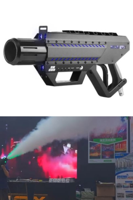 This CO2 cannon comes with a RGB LED light to put on a show. Once you trigger it, the H-C08 creates a white plume of smoke. It is 40W rated. It has a detachable strap. To get started, turn on the CO2 gun switch, select light mode, and pull the trigger. The above video shows it in action.