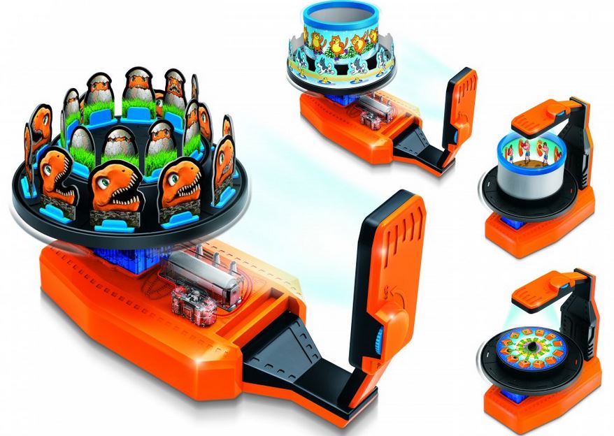 This toy has 6 modes for you to take advantage of, including Inner/Outer Cylinder Zoetrope, Die Cut Zoetrope, and Phenakistoscope modes. Costs under $35 at this time.