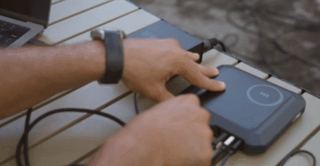 This power bank can be charged to 100% in one hour. It has a 450-lumen flashlight with SOS and standby modes. This power bank is 4ft drop protected. It can fast charge 5 of your devices at the same time. Unlike regular power banks, this one can operate at -4F. It also holds charge over 2000. You get 2 x 140W USB-C, a 27W USB-C, and a 60W USB-A port to charger your MacBook and other devices. X25 also has a wireless charging panel.
