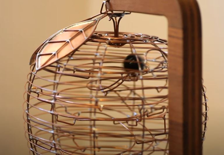 Here is another gorgeous handmade rolling ball sculpture that puts on a show as you let balls roll through it. As Jonathan at LittleBallCreations explains, it took 65 hours to complete this. This is made with copper wire, copper sheet, and teak wood. It has a footprint of 24 x 28 x 24cm. As you drop a ball from the top, it will roll through and rest in the slot at the bottom.