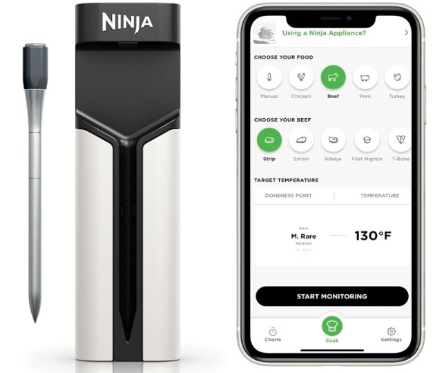 You don’t need to be a pro chef to cook your meat perfectly every time. The Ninja ProChef WP100 is a smart meat thermometer you can pick up to get the job done perfectly every time. It lets you roast, smoke, and grill your food in heat up to 700F. With the ProConnect app, you get cooking guides and recommendations.