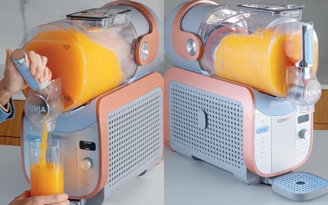 This is the Ninja SLUSHi Max: one of the largest and smartest frozen drink makers ever made. Unlike 68 and 88oz models that we have reviewed here in the past, this model has 150oz capacity, so it is great for larger parties. The Ninja SLUSHi Max FS605 has 6 programs for you to choose from, including slush, spiked slush, milkshake, and frozen juice. With the SlushAssist program, there is no guesswork required. The machine will sense your ingredients and their freezing point to adjust to the ideal temperature.