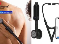 Meet the One by Thinklabs: a stethoscope that fits in the palm of your hand and amplifies sounds over 100x. It uses regular headphones to get the job done. Just plug it in, and you are set. You can use any headphones or Thinklabs’ studio quality In Ear headphones. You get precise filtering, so you can listen with multiple filter choices. The device has a battery you can recharge using a USB charger. The battery should last you a few days (100 – 125 patient exams per charge).