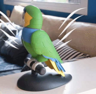 This is the Onorato AI: a robotic bird designed to keep your loved ones company. It has a camera, temperature sensor, and motor for 180-degree motion. It features fall and emotion detection. Onorato AI combines with 3 sensors for enhanced monitoring. Remote monitoring via an app is also supported, which will be available for iOS and Android devices.