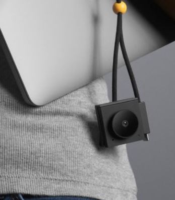 The Tadpole lets you mute your calls with a single tap. Its VisiMic microphone captures only what the camera sees. You get a bead to wrap this camera around your wrist. This camera measures 3.5 x 4.5″.