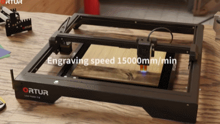 The ORTUR Laser Master 3 has a 20,000mm/min engraving speed. It works with LightBurn and LaserGRBL. This laser engraver has 7 safety protection systems. It works with Windows and Mac computers. It