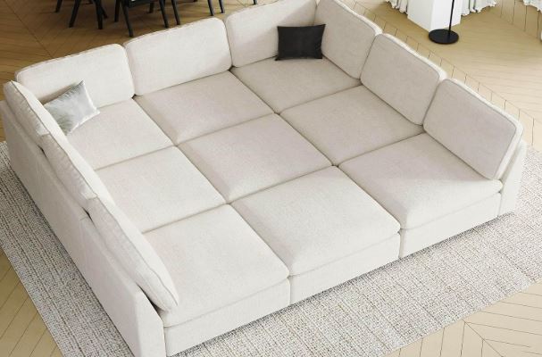 Having to deal with a small sofa is not fun. The Belffin Oversized Modular Sectional Sofa has plenty of room for you and your family to relax. It can be assembled in a variety of shapes. It has 9 seats with deep cushions to provide your body with ample support. It has its own storage space to help you keep things organized. This large sofa has a footprint of 35.8 x 95.6 x 101.5″.