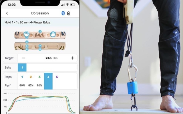 In order to become a better climber, you need to work on your strength and overall fitness all the time. The Force Board Portable Dynamometer can help. It is an isometric strength trainer with up to 1000lb load capacity, depending on the version you pick up. This trainer is smart enough to start when you pull on it and stops when you stop. It automatically captures your RFD on each rep.