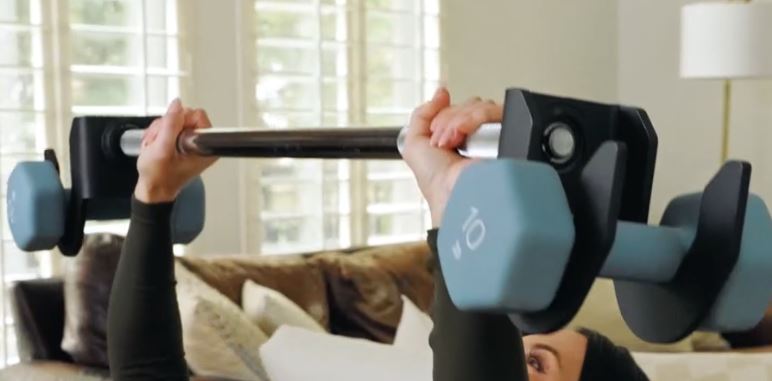 This bar doesn’t have plastic parts. It works with 5-inch diameter dumbbells from top brands such as Core Fitness, LifePro, Yes4All, and Cap Barbell. Adjustable dumbbells also work. PivotBar has a knurled bar to give you a secure grip. The bar weighs 16.5lbs without dumbbells. It has a carbonized steel and iron construction.